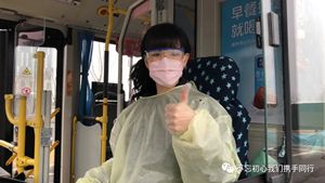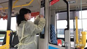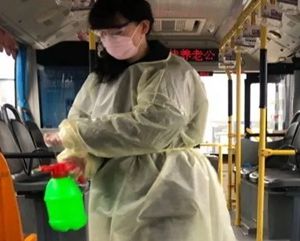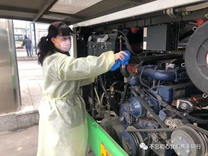 2月24日2路第一天恢復運營,每部參運車輛多出一名隨車體溫檢測員,王穎跟丈夫分在同車組。早晨6:00,夫妻倆已經(jīng)到2路始發(fā)站唐山站,開始出車前的準備工作:檢查完車輛安全,再打掃干凈衛(wèi)生,噴灑消毒液對車廂每處角落進行徹底消殺。王穎跟丈夫一對一天輪流開車、進行登記,從唐山站行駛到啟新立交橋后,就要停留兩分鐘嚴格落實一車次一消毒。遇見急躁的乘客,王穎就耐心勸導;有不明白的老年乘客想乘車,她也總不厭其煩地解釋溝通。