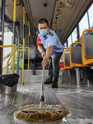 唐山公交五公司班子成員下路隊、上公交、對每一輛車的車容車貌、衛生情況開展檢查,發現問題后隨手拿起抹布對保潔人員、司機做起清潔車廂的示范,三個路隊的路隊長更是利用所有業余時間對車輛進行大清掃。為了讓車輛清掃活動開展的更加有成效,鄭斌經理要求每隊提出一個衛生口號,于是“人手一塊小抹布” 、“安全人人管 衛生人人干”、“人人做整理 場站有條理 全員做清掃 車廂更美好”等口號,夾雜著汗水伴隨著職工大清掃的熱情,讓車輛衛生清理達到了“潔”的效果。截止到目前為止,五公司完成現有202輛公交車、7個公交場站、9個發車點的衛生百分百清理與復查整改。值得一提的是,屈莊公交車場在環境雜亂、設施設備不足的情況下,依然在總公司“四項”重點工作推進檢查中得到督導組的認可和表揚。三隊的管理人員更是在開展衛生大清掃活動中起到了帶頭作用,還創造了許多衛生清掃“小竅門”,比如馬翯書記用自行購買的吸塵器清理駕駛室內的腳踏板,防止了用水沖洗造成的電路短路不安全隱患,由李旺隊長發現并在全公司推廣使用的海綿擦代替鋼絲球擦洗,防止了過度清潔對車身造成的損壞。