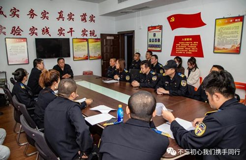 隊長田國華在對全大隊開展工作思路轉(zhuǎn)變會議時曾說:“公交是公益服務(wù)型企業(yè),我們是稽查的隊員,但我們更是公交企業(yè)職工,我們有服務(wù)社會、服務(wù)企業(yè)、服務(wù)一線的職責”,同時提出以“人”的轉(zhuǎn)型,促進“事”的轉(zhuǎn)型工作思路,逐步實現(xiàn)稽查大隊轉(zhuǎn)型“服務(wù)”型團隊。在疫情之初,唐山公交歷史上首次出現(xiàn)停運的罕見情況,稽查大隊原本可以在此期間全員輪休,但是為助力企業(yè)做好疫情防控的各項工作,他們主動請纓,每天清晨5點多鐘就駐守在公交各個場站一直到夜晚,幫助各場站做好消殺工作。一年多來,稽查隊員駐守公交場站無一次人員遲到、早退的秘訣是:每天無論多早、多晚,田國華大隊長都會在大隊工作群內(nèi)發(fā)布第一個按時到崗、最后一個退崗的隊員自拍照,并“@點贊”,用“以人為本”的關(guān)注方法,激勵和促進隊員的工作積極性。在今年夏天連續(xù)暴雨的極端天氣時,隊員們?yōu)榉乐闺妱庸卉囘M水,在公交車必經(jīng)之路,用最原始的方法——站立在積水區(qū)提示和指揮公交車輛繞行,保障公交車輛安全行駛、保護企業(yè)財產(chǎn),護航每一名乘客;更是在常態(tài)化創(chuàng)城工作中,派出所有隊員對全市涉及到的2700余個公交站點、站牌,2300余個公交候車亭進行了多次拉網(wǎng)式全面檢查。