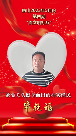 畢艷福,豐南區黑沿子鎮澗河二村人。5月5日,畢艷福騎電動車去澗河碼頭,隱約聽到有人喊落水救人的聲音,他急忙把電動車一扔,快速跑到岸邊,看到一名游客不慎落水,雖剛剛漲潮,水不是很深但是泥漿太多,游客越陷越深。畢艷福靠著多年在海上打魚的經驗,找來幾米長的纜繩扔到水里,讓落水的人抓住繩子,同時與其他游客一起抓緊另一頭用力往上拉。可是泥水太深,越拽越陷,緊急關頭,畢艷福告訴落水的人趕緊把繩子捆在腰上,最后在大家的努力下,落水人員成功獲救。在游客面臨危難的關鍵時刻,畢艷福挺身而出,奮力救人,用行動彰顯了見義勇為的內涵。
