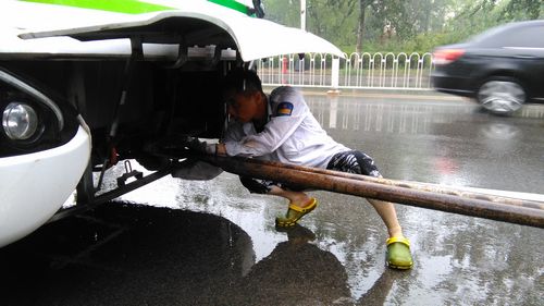 12時(shí)30分,207路車在行至開平路段時(shí)出現(xiàn)故障。機(jī)務(wù)隊(duì)長張繼民立即開著拖車前往現(xiàn)場,不料返回途中拖車也壞了,得知情況的隊(duì)長立即與修理車間聯(lián)系,又派出安全員孫濤、張利明和修理工王金偉火速趕赴現(xiàn)場冒雨搶修,直至晚上六點(diǎn)多,故障車和拖車才順利返回車場,而參與搶修的幾名工作人員早已經(jīng)全身濕透。