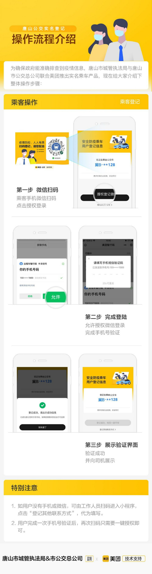 該實(shí)名制登記系統(tǒng)是唐山市城管執(zhí)法局、唐山公交總公司與美團(tuán)公交合作開(kāi)發(fā),已覆蓋所有公交車(chē),實(shí)現(xiàn)了“一車(chē)一碼”。登記的相關(guān)信息使用專(zhuān)用服務(wù)器予以加密保存,既杜絕了登記信息泄露的風(fēng)險(xiǎn),又可有效減少因手工登記帶來(lái)的接觸風(fēng)險(xiǎn)。在此倡議乘客朋友積極配合、文明乘車(chē),有序排隊(duì)掃碼登記,請(qǐng)予理解和支持。