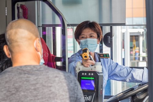 嚴格落實常態(tài)化疫情防控工作舉措,運營車輛堅持消毒通風(fēng),重點對車廂地板、司機方向盤、車窗開關(guān)、座椅扶手、車內(nèi)欄桿、刷卡機、投幣口等部位進行消殺,加強通風(fēng)換氣,保持空氣流通。公交司乘人員佩戴口罩上崗,同時提醒乘客佩戴口罩乘車,共同打造安全健康的出行環(huán)境,讓乘客安心上車。